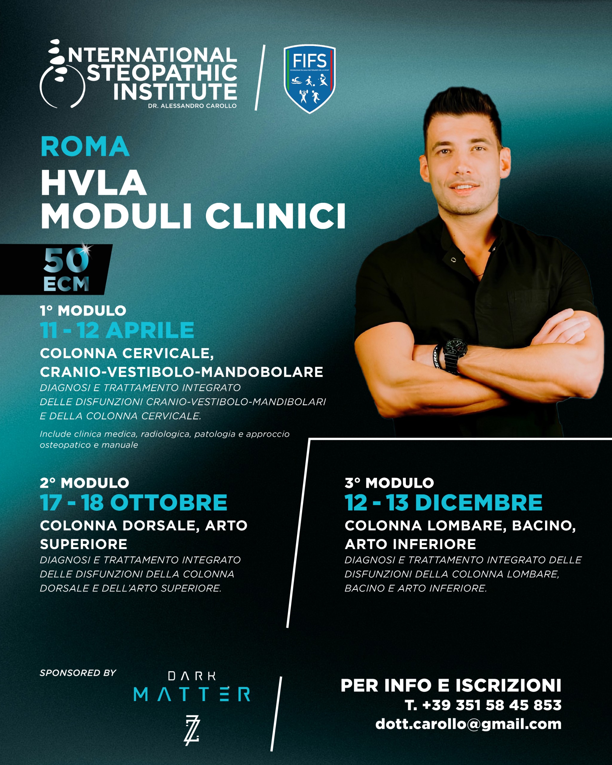 HVLA – Moduli Clinici – 2026.E’ il primo ed unico corso in Italia ad avere sette medici specialistici, nell’affiancamento didattico alle HVLA. Durante il corso verranno trattate: Diagnosi Differenziale, Clinica e Strategia Terapeutica delle HVLA in relazione alle patologie e al paziente.
